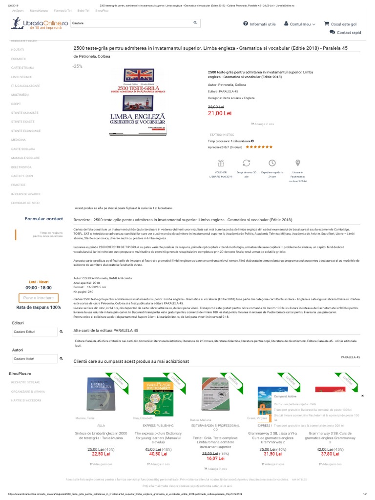 Limba Engleză Gramatică și Vocabular 2500 Teste Grilă Pentru Admiterea In Invățămantul Superior Editura Paralela 45