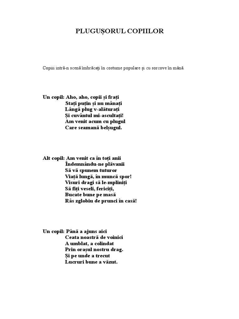 Maine anul se inoieste plugusorul se porneste si. Al cărților de tarot care s au deschis pentru anul 2019 și ne spun următoarele. Ia mai mânaţi flăcăi și sunați din zurgălăi. Aho aho copii si frati buruienesti aho aho copii si frati stati putin si nu manati langa boi v alaturati si cuvantul mi ascultati.