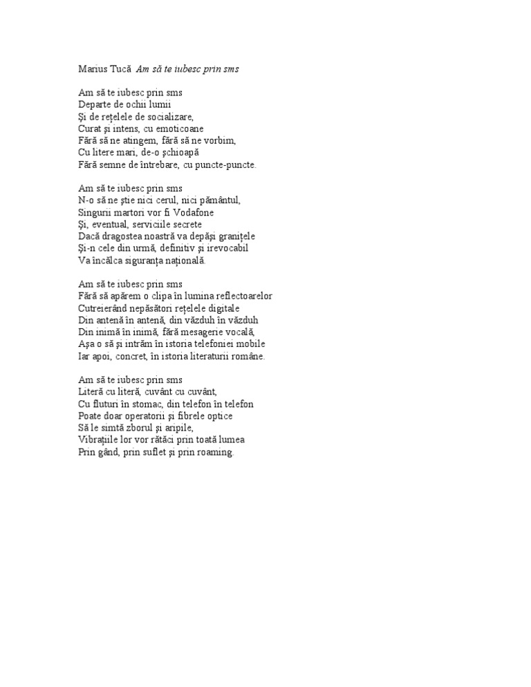 Poezie Marius Tuca Am Sa Te Iubesc Prin Sms