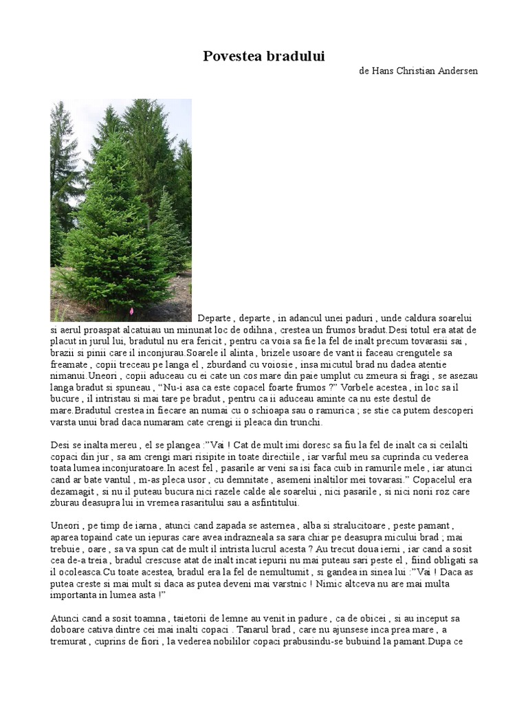 Din Textul Bradul De Hans Christian Andersen Tot Inafară De 8 Dau Coroană Muțumesc Brainly Ro