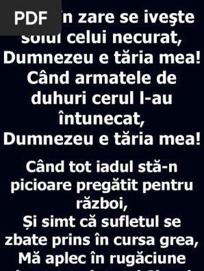 Cand In Zare Se Iveste Solul Celui Necurat Dumnezeu E Tăria Mea Cand Armatele De Duhuri Cerul L Au Intunecat Dumnezeu E Tăria Mea