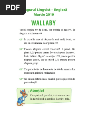 Cangurul Lingvist Engleza Subiecte Clasa 3 4