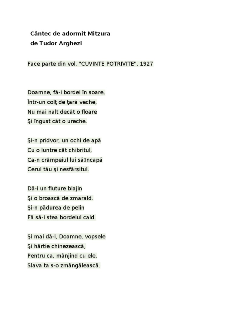 Cantec De Adormit Mitzura De Tudor Arghezi 34m7mmyvmm46