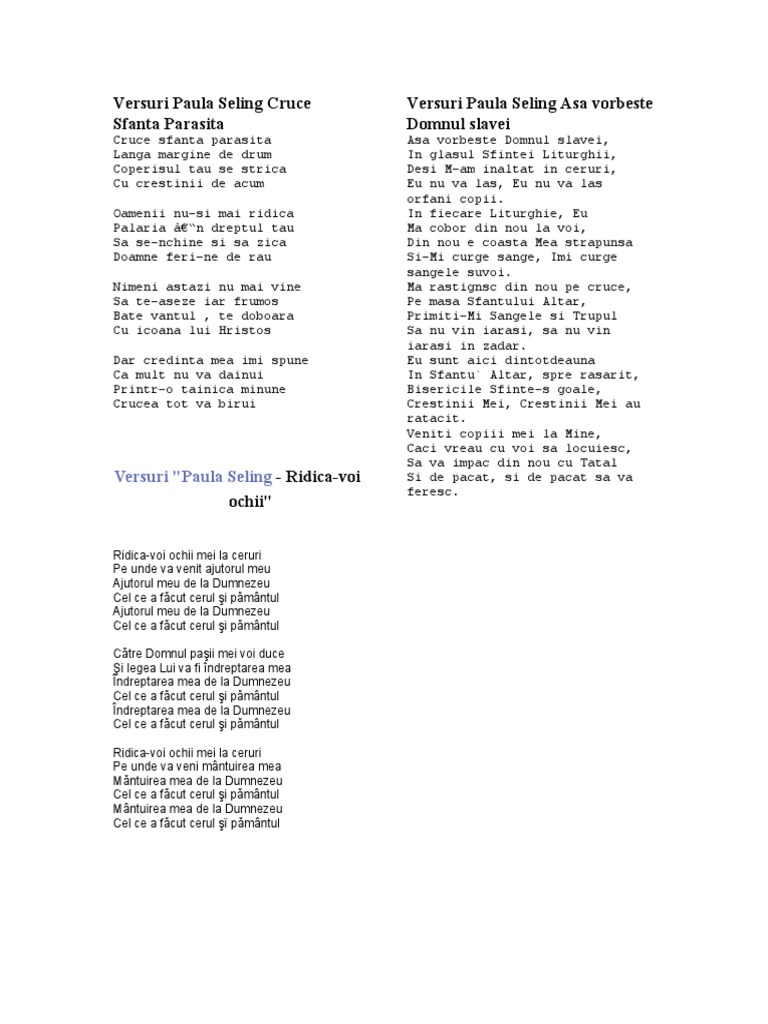 Paula Seling Ridica Voi Ochii Versuri