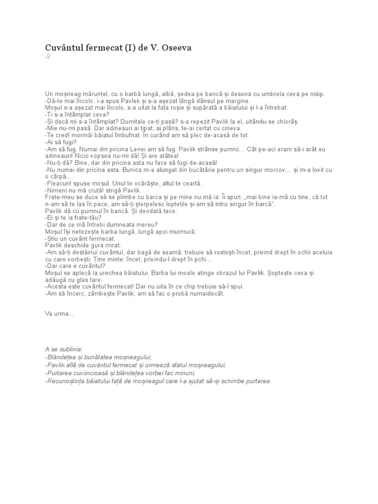 Cuvantul Fermecat Ii De V Oseeva Anideșcoală Ro