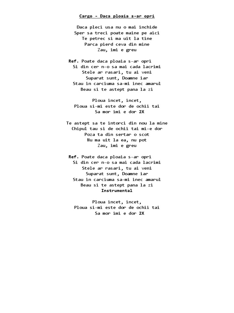 Versuri Auditie Karaoke Daca Ploaia S Ar Opri Cargo Cantece Romanesti Populare Patriotice Romante Folk