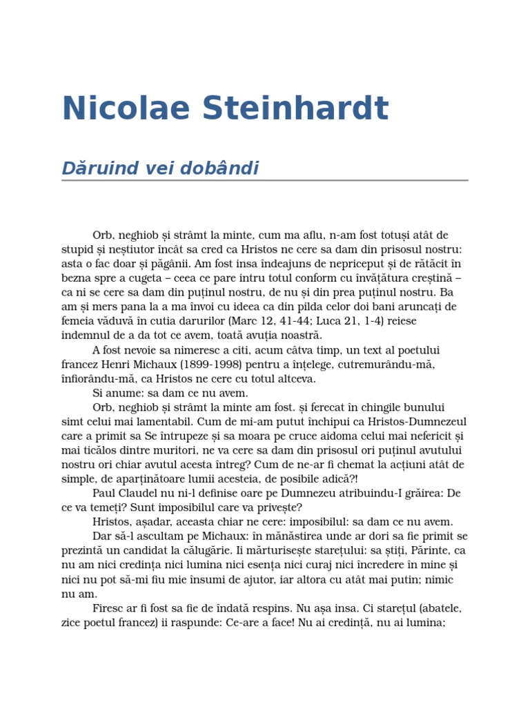 Dăruind Vei Dobandi Cuvinte De Credinţă Nicolae Steinhardt Cartepedia Ro