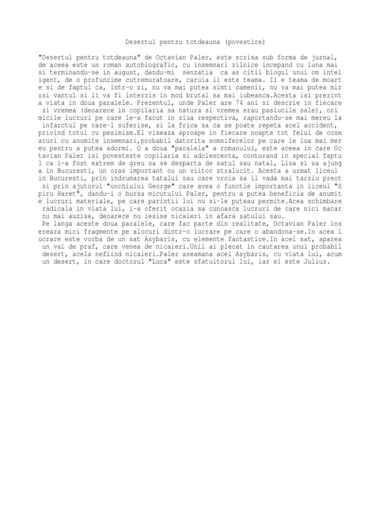 Desertul Pentru Totdeauna Rezumat