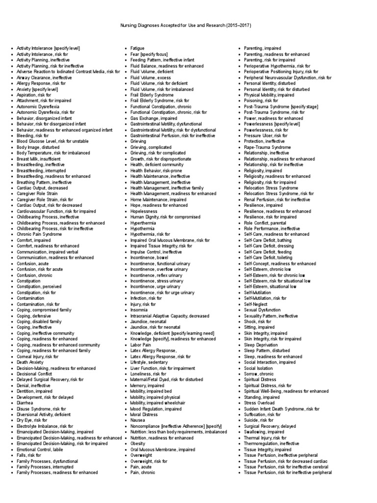 Nanda Nursing Diagnosis List 2018 2020 Pdf Breastfeeding Caregiver