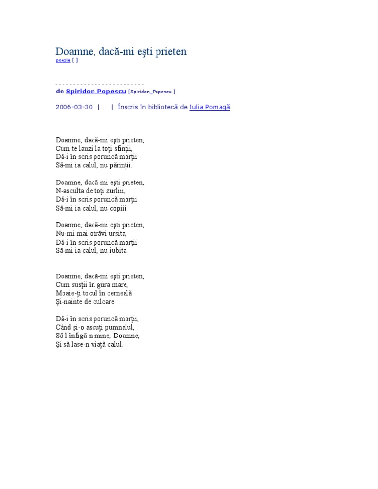 Poezia Zilei Doamne Dacă Mi Esti Prieten Spiridon Popescu