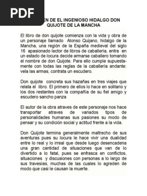 Breve Resumen De Don Quijote