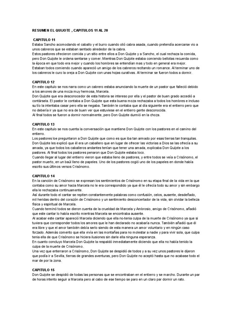 Resumen El Quijote Cap 11 Al 20 Don Quijote Amor