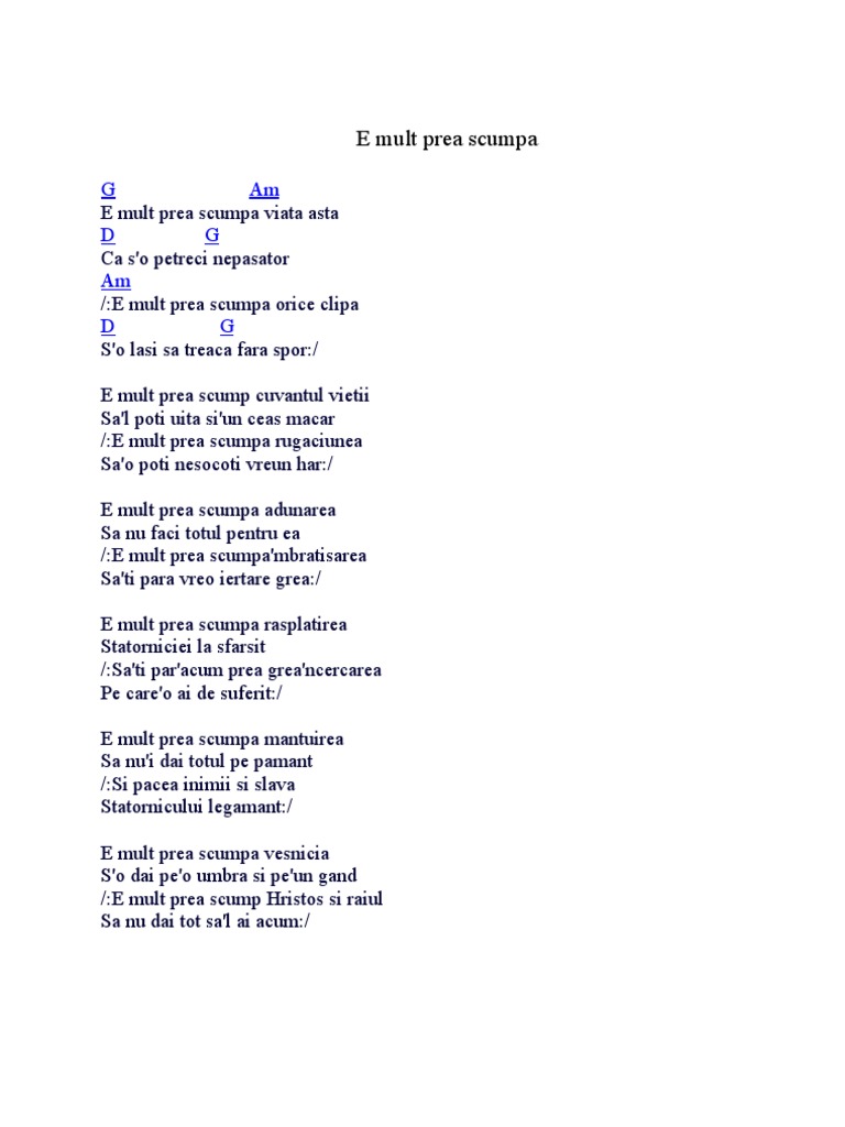 E Mult Prea Scumpa Viata Asta Negativ Crestin Cu Versuri Chords Chordify
