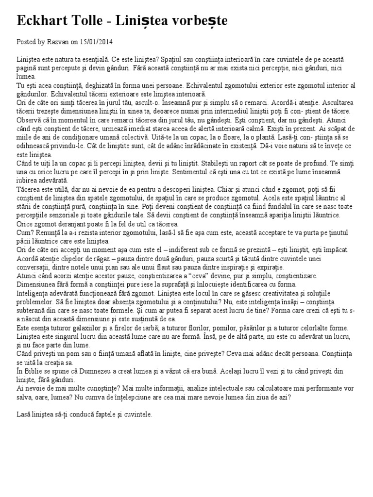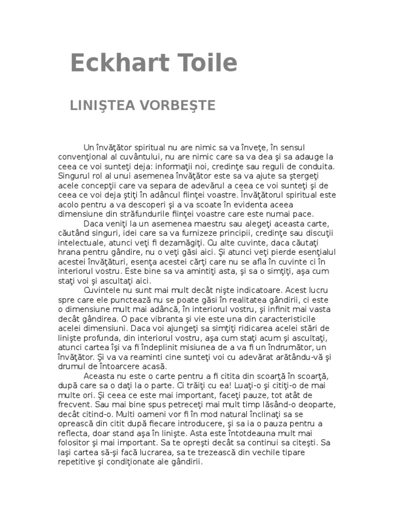 Linistea Vorbeste Eckhart Tolle Pdf