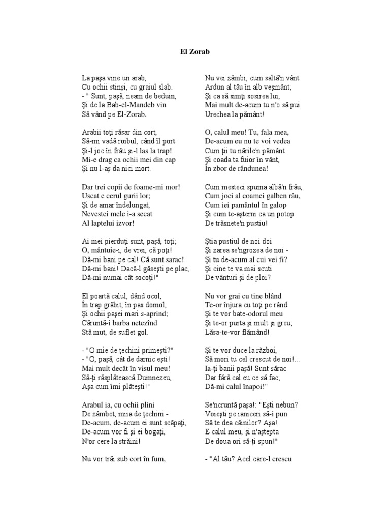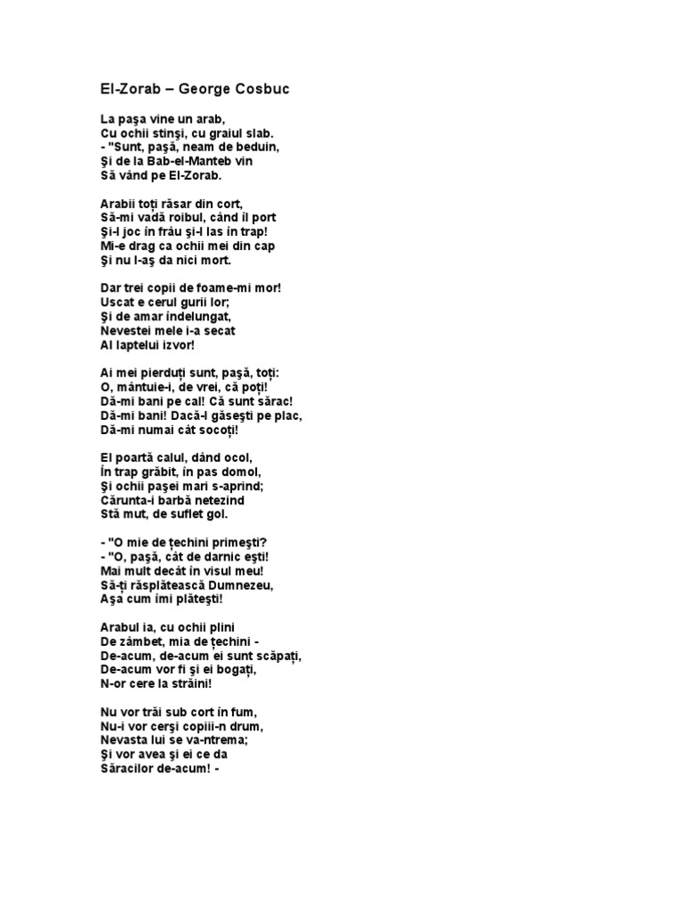 El Zorab De George Cosbuc Anideșcoală Ro