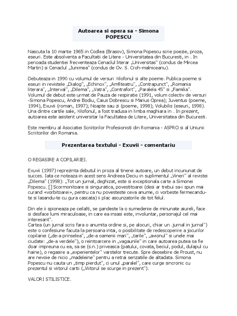 Rezumat Si Comentariu Referat La Exuvii De Simona Popescu Rezumate Cărți Citeste Cărți Online Pdf Caracterizări Referate Si Comentarii Cărți