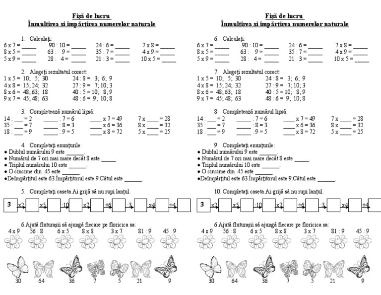 Fisă De Lucru Inmulţirea Si Impărţirea