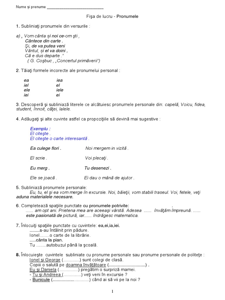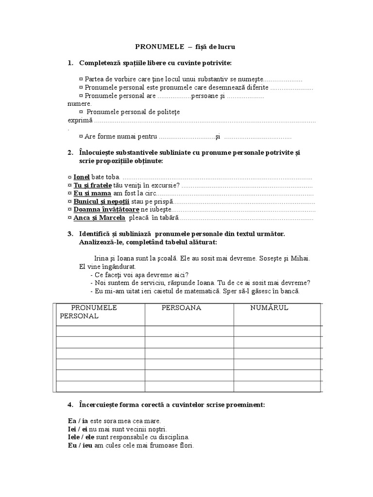 98084297 Pronumele Fisa De Lucru Exercitii Pdf