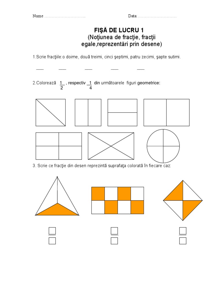Fracții La Ciclul Achizițiilor Fundamentale Fișe De Activitate