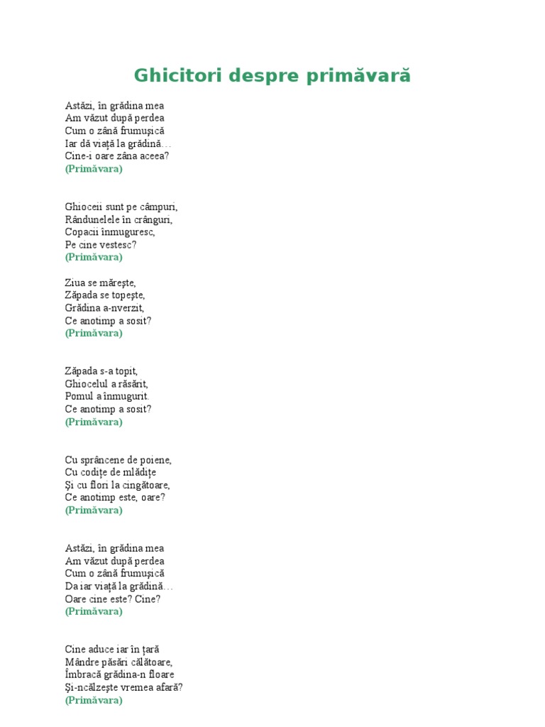 Ghicitori Despre Primavara Pentru Copii Infobella Ro