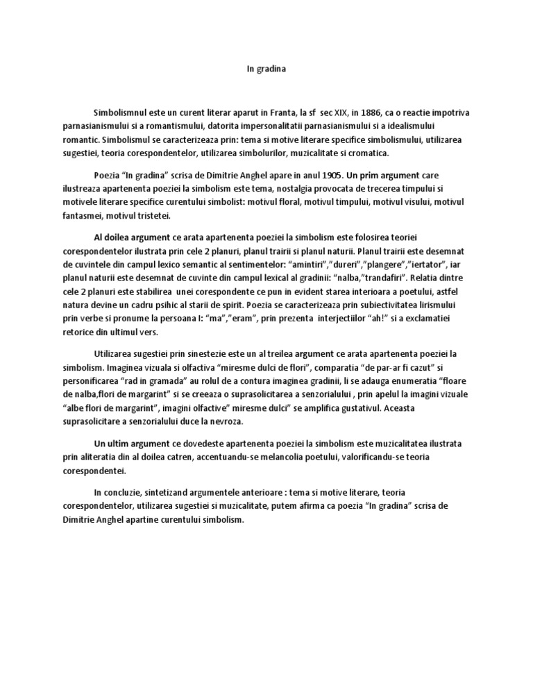 In Grădină De Dimitrie Anghel Comentariu Anideșcoală Ro