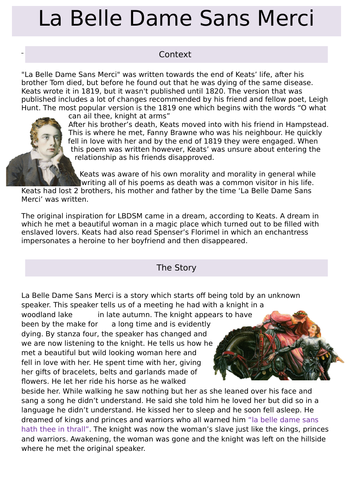 La Belle Dame Sans Merci Revision Notes Teaching Resources