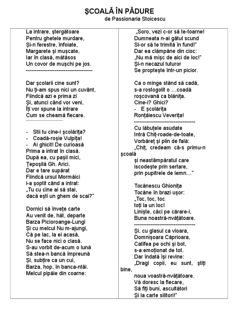 La O școală Din Pădure De Passionaria Stoicescu Zaicescu Mirela 11 09 2015