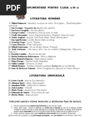 Lista Lecturi Suplimentare Clasa A Ii A Doc