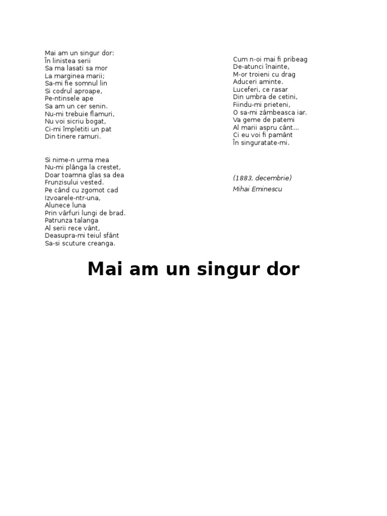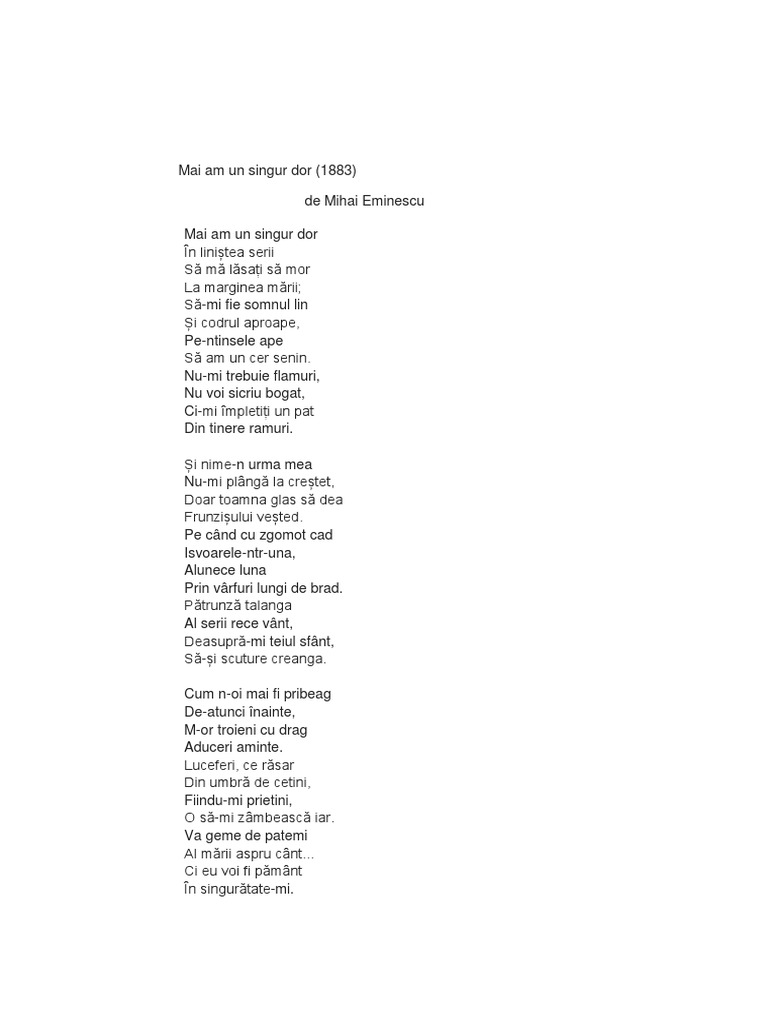 Mihai Eminescu Mai Am Un Singur Dor