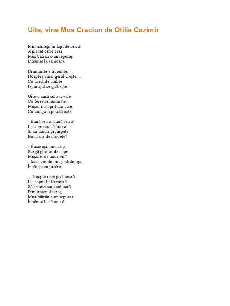Uite Vine Mos Craciun De Otilia Cazimir