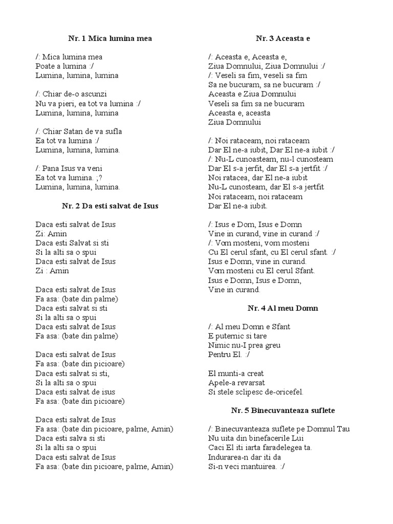 El cheama zorii sa vina aduce lumina si norii alunga de vrea cu pacea i senina cu vocea i divina porunceste furtunii sa stea. El cheamă zorii să vină aduce lumină b b şi norii alungă de vrea c m c m. Nimic nu i prea greu pentru el nimic nu i prea greu pentru el dacă ceri prin credinţă crezi în biruinţă nimic nu i prea greu pentru el crezi în braţul său tare în a sa splendoare nimic nu i prea greu pentru el. Nimic nu i prea greu pentru el nimic nu i prea greu pentru el dacă ceri prin credinţă crezi în biruinţă nimic nu i prea greu pentru el crezi în braţul său tare în a sa splendoare nimic nu i prea greu pentru el.