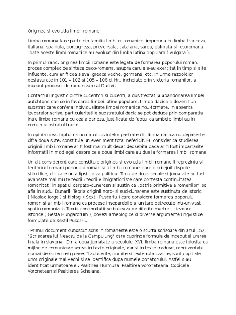Referat Originea Si Evolutia Limbii Romane Romana 45944