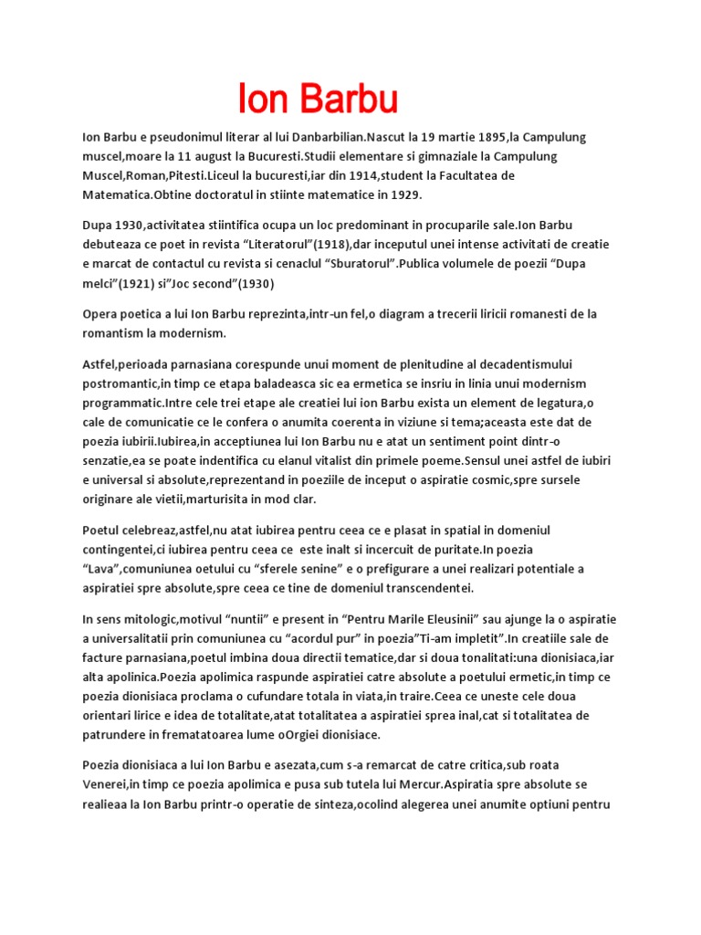Poezii De Ion Barbu Cercul Poetilor Disparuti