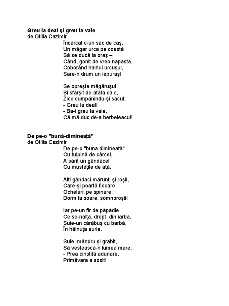 De Pe O Buna Dimineata Otilia Cazimir Poezii Cantece Versuri Pentru Copii