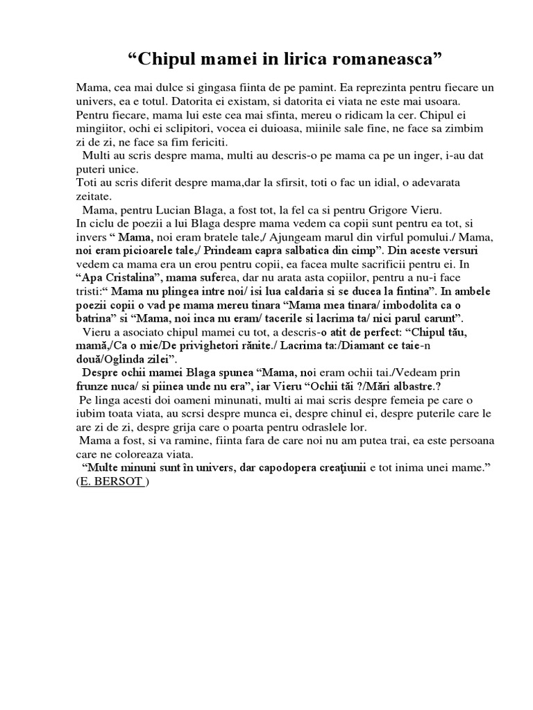 Chipul Mamei In Lirica Romaneasca