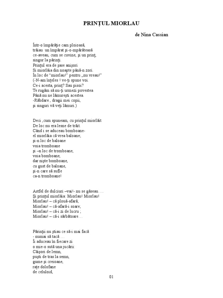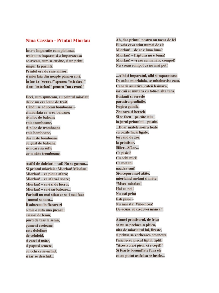 Printul Miorlau De Nina Cassian Anideșcoală Ro