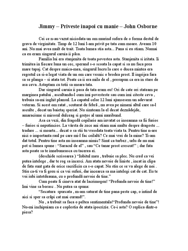Jimmy Priveste Inapoi Cu Manie John Osborne