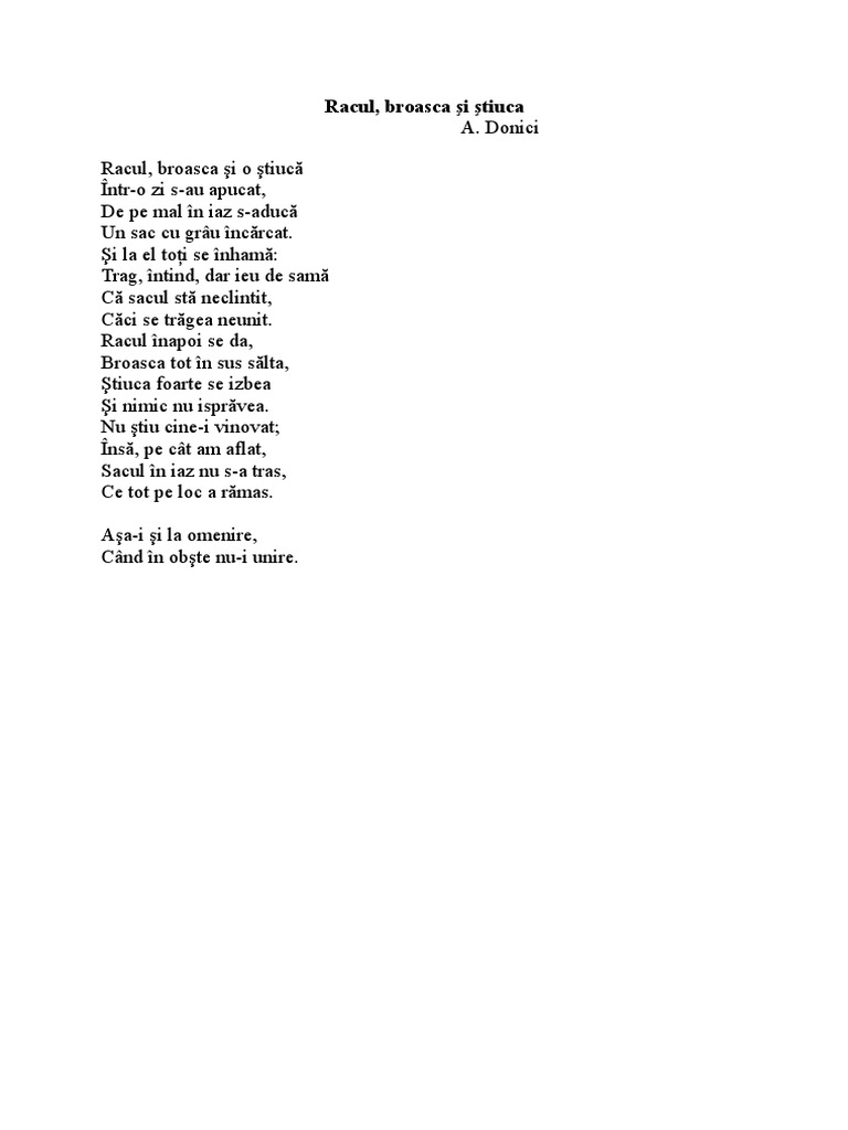 Racul Broasca Si Stiuca Scrie In Cite Un Enunt Idee Principala Pe Care O Desprinzi Din Fiecare Brainly Ro