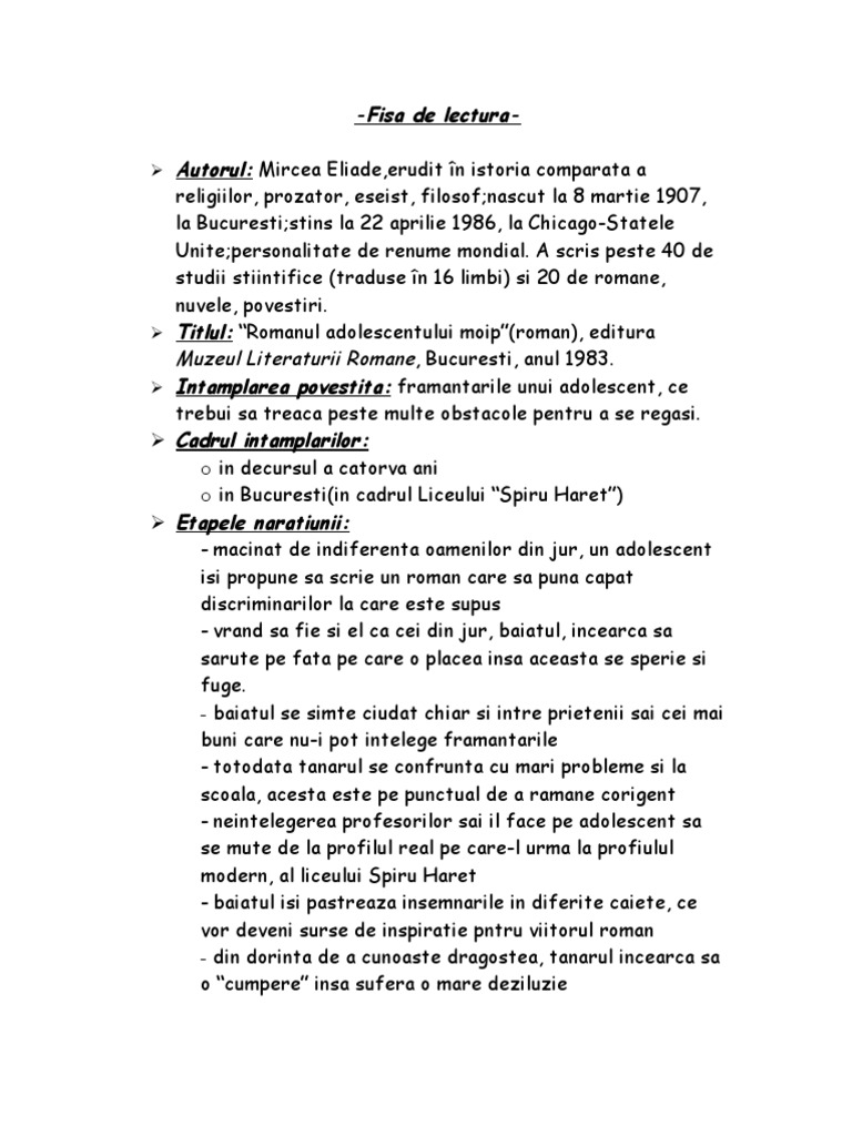 Romanul Adolescentului Miop De Mircea Eliade Diverta
