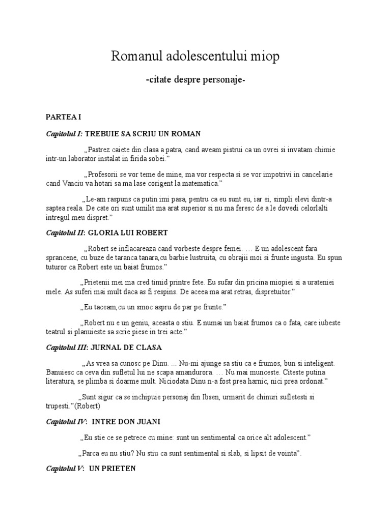 Romanul Adolescentului Miop Caracterizarea Personajului Principal 9088