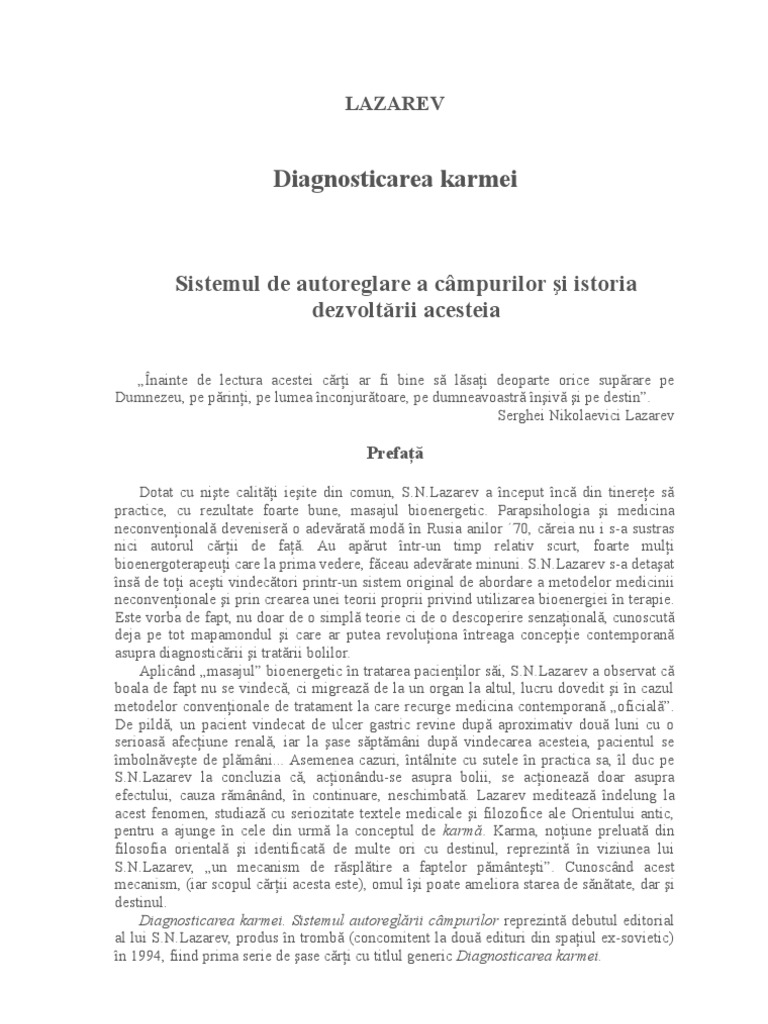 Diagnosticarea Karmei Sistemul Autoreglării Campurilor Vol 1 S N Lazarev Cartepedia Ro