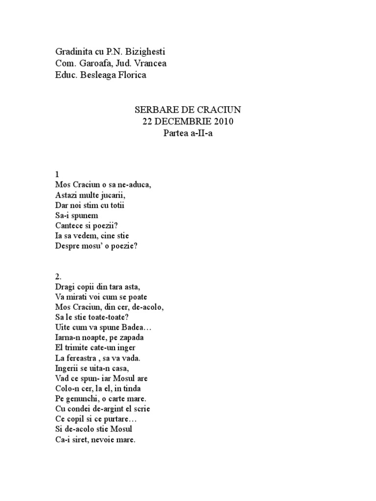 Cantece Si Poezii Pentru Craciun