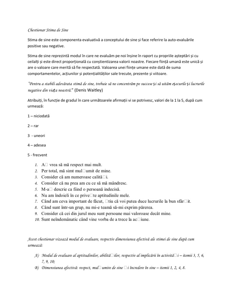 Chestionar Stima De Sine