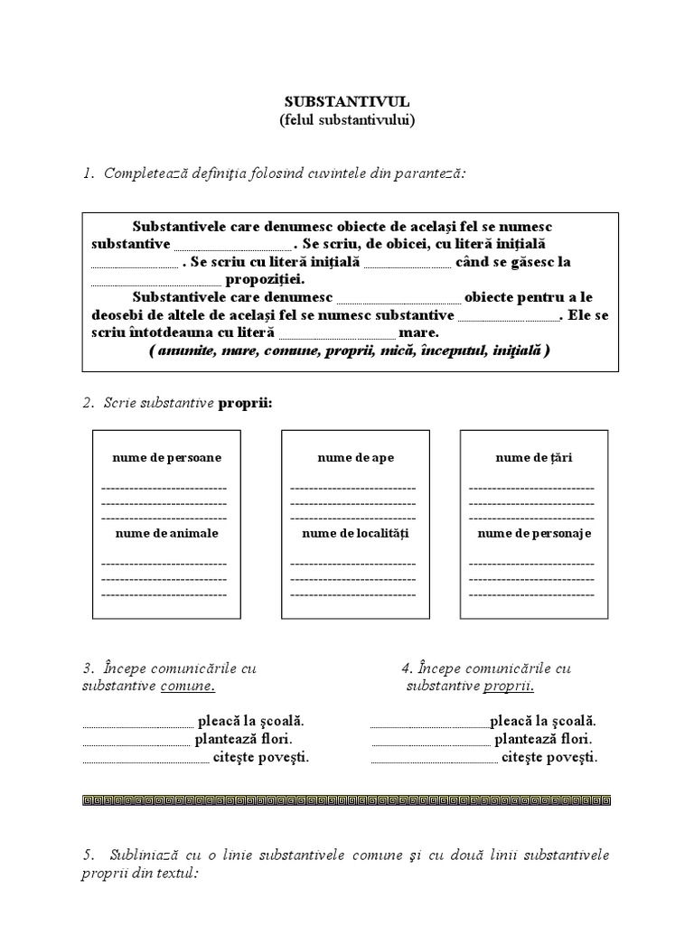Substantive Comune Fise De Lucru Limba Romana Clasa 3 Substantivul
