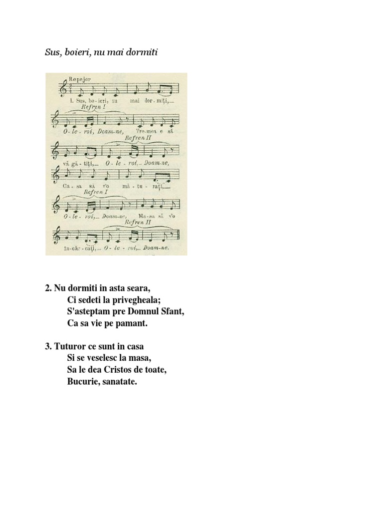 Sus Boieri Nu Mai Dormiti Versuri Colinde