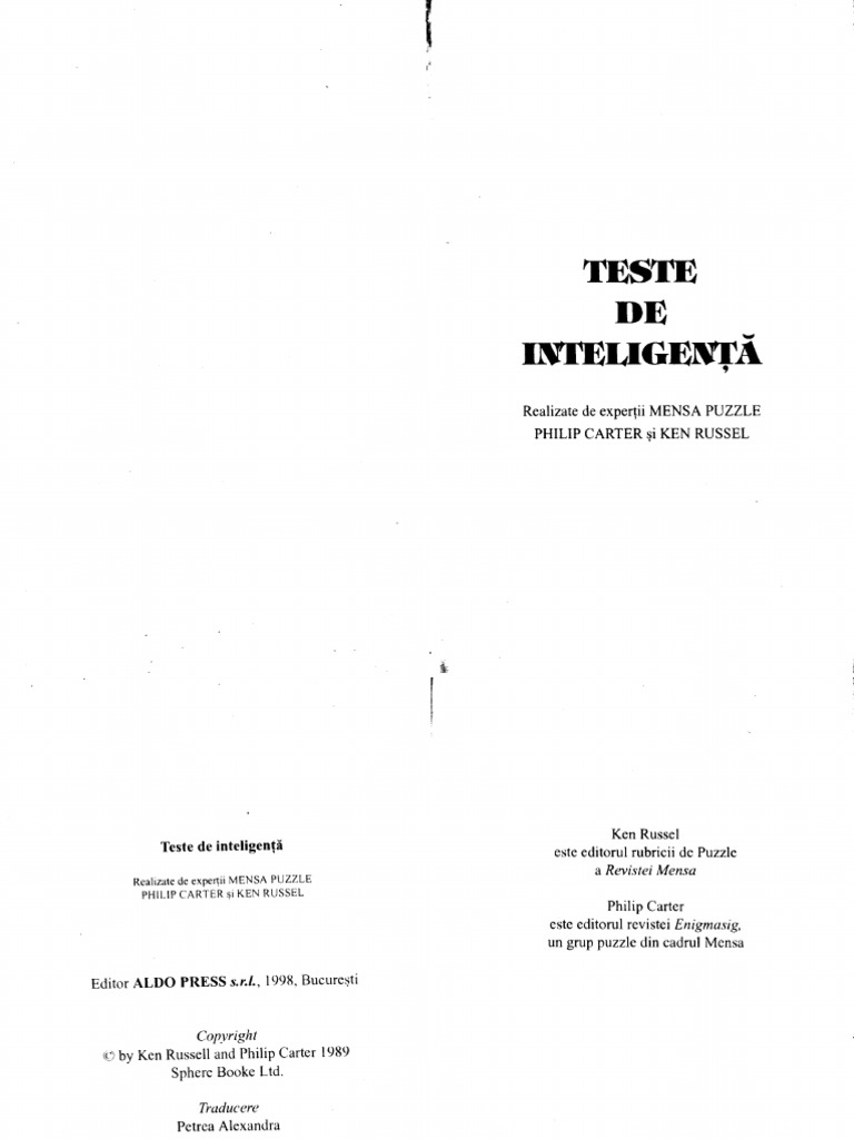 Pdf Ph Carter Ken Russel Teste De Inteligenta Andreea Săvulescu Academia Edu