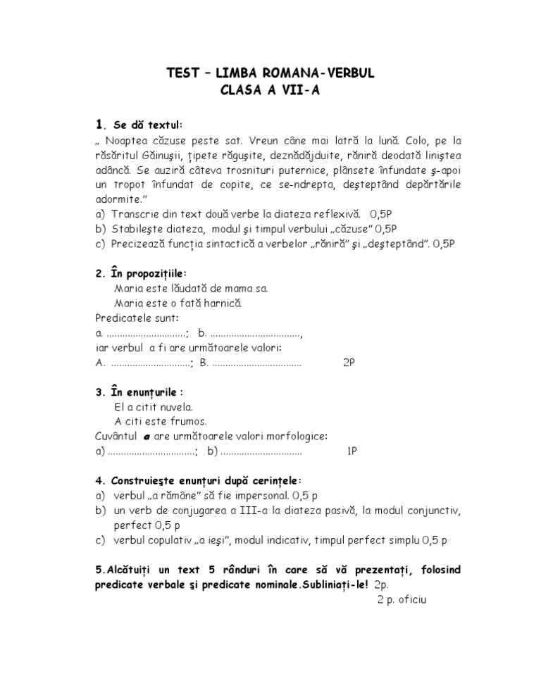 Teste Limba Romana Clasa A V A