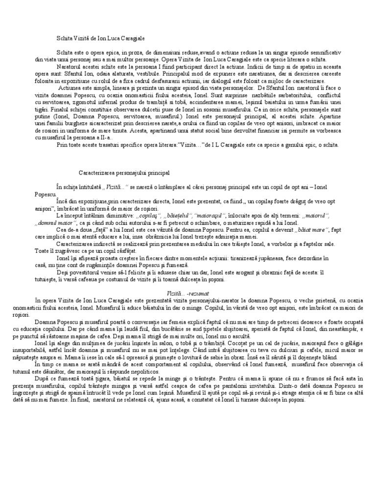 Schita Vizită De Ion Luca Caragiale