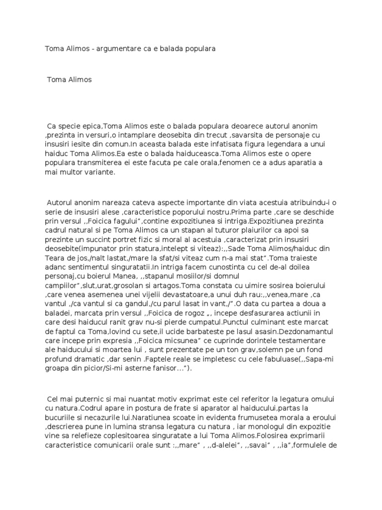 Referat Balada Populara Toma Alimos Demonstratie Si Caracterizare 337940 Graduo