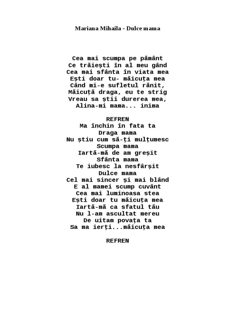 Mariana Mihaila Dulce Mama Versuri